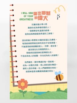 兒童祝福分享小冊「唱出耶穌的偉大」