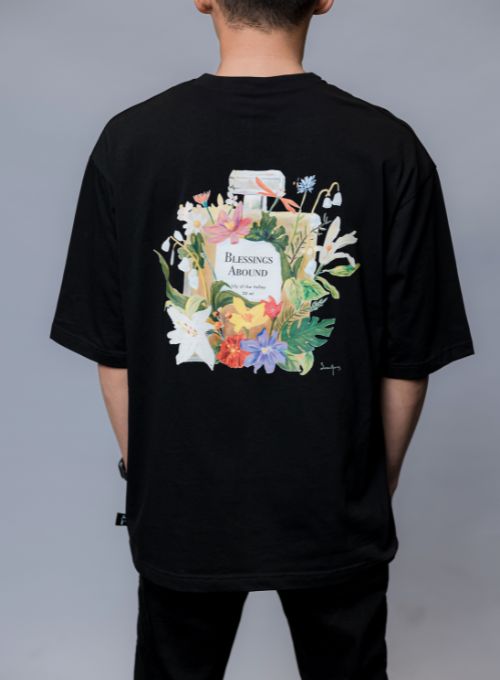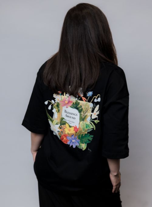 敬拜藝術設計款 T-shirt – Blessings Abound 祝福滿滿,oversize 寬鬆版型,舒適自在,搭配 透氣輕盈布料,無論日常穿搭或敬拜時都能保持輕鬆自在。簡約百搭的剪裁,輕鬆搭配各種下身單品,是 藝術家限定款的人氣必備單品。
